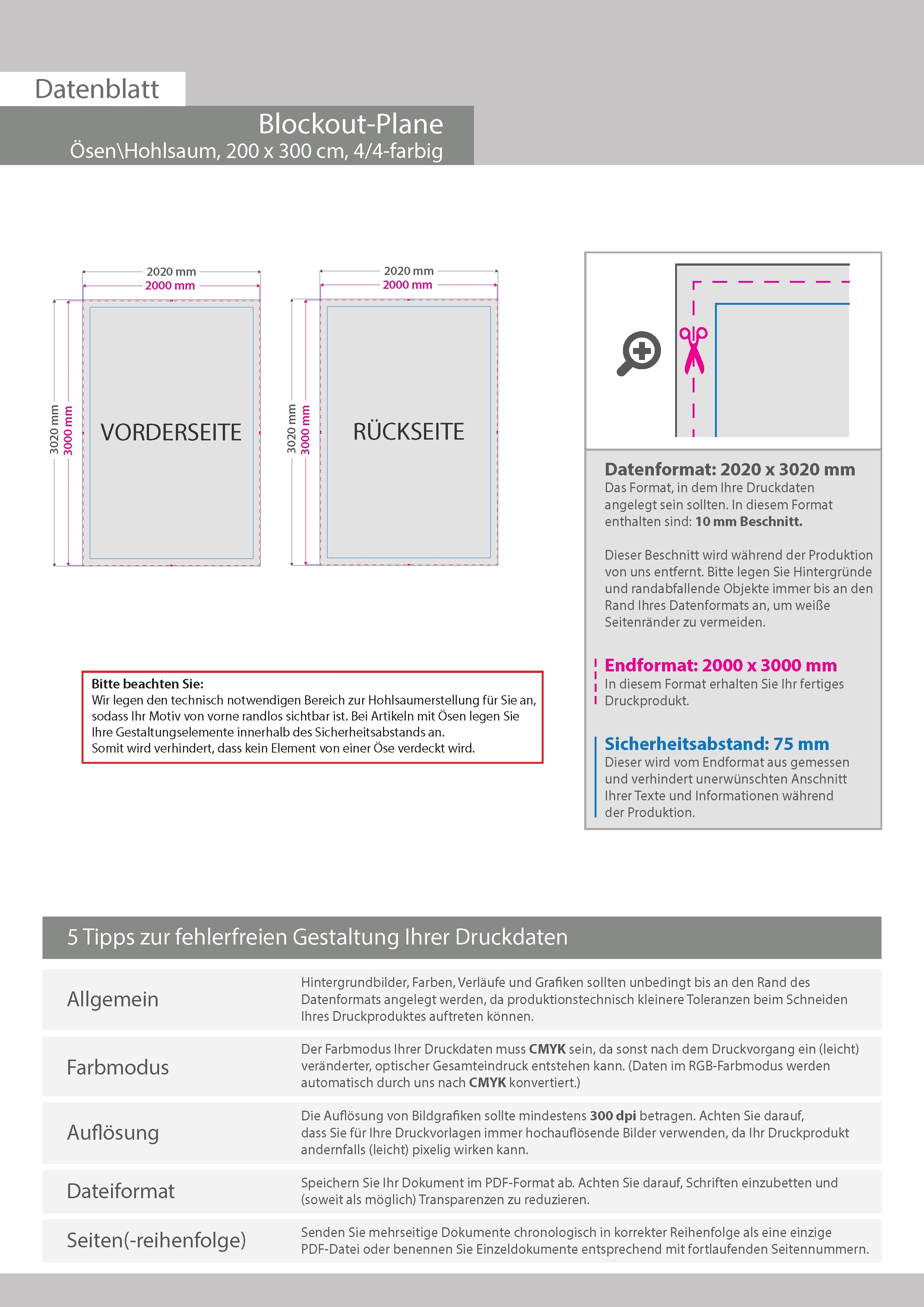 Hochwertige Blockout-Plane 200 x 300 cm, 4/4-farbig bedruckt, Ösen im Abstand von 50 cm rundum