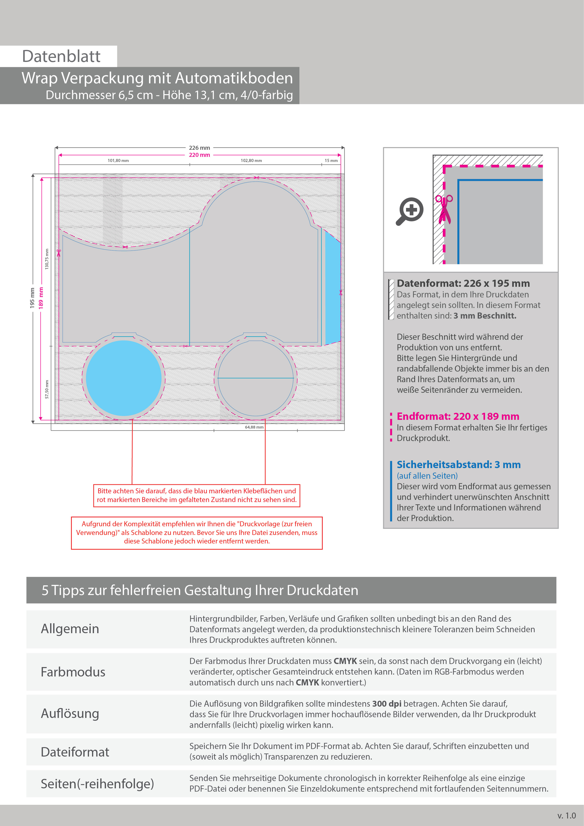 Wrap Verpackung mit Automatikboden (Durchmesser 6,5 cm - Höhe 13,1 cm) einseitig bedruckt 4/0-farbig
