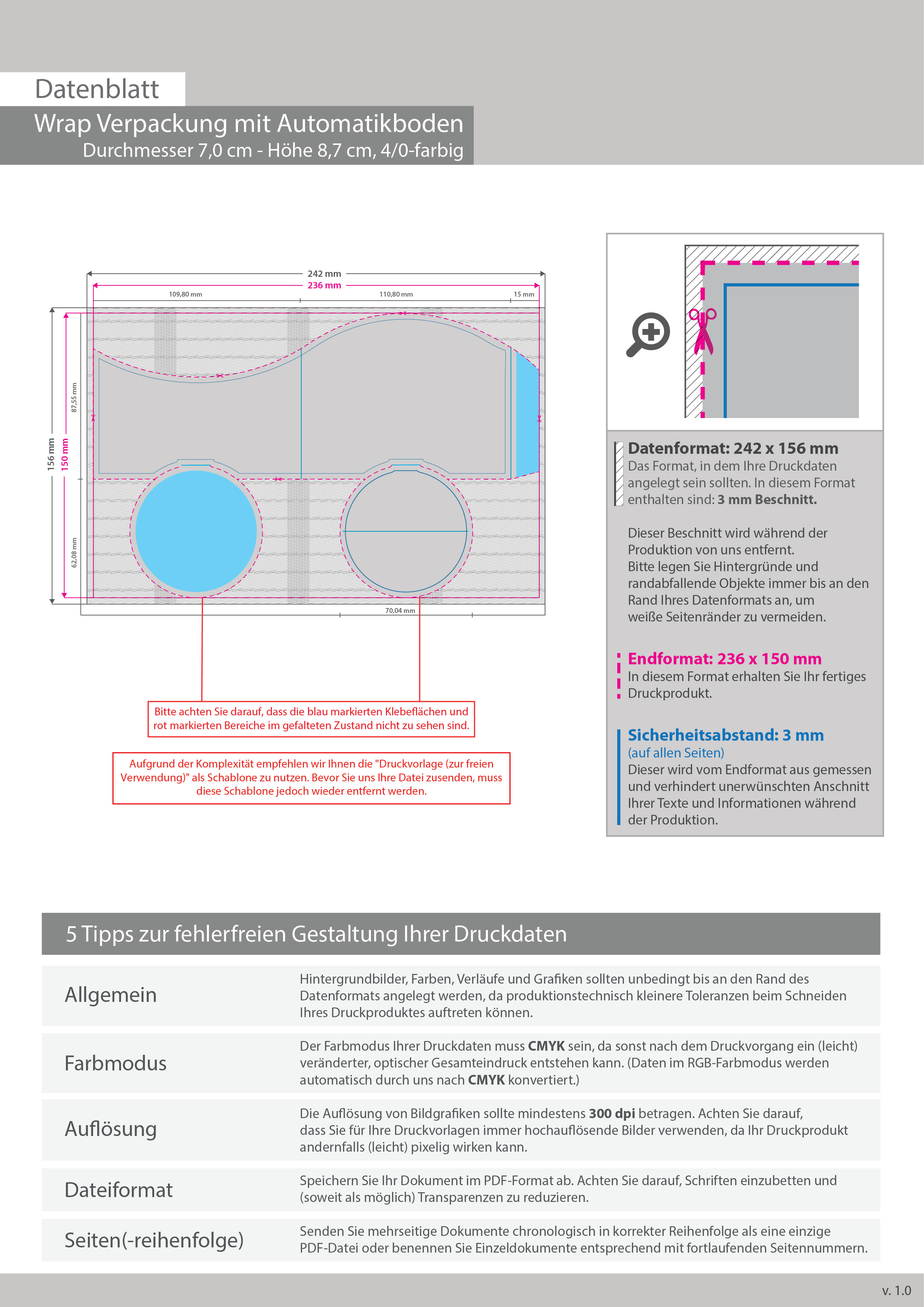 Wrap Verpackung mit Automatikboden (Durchmesser 7 cm - Höhe 8,7 cm) einseitig bedruckt 4/0-farbig
