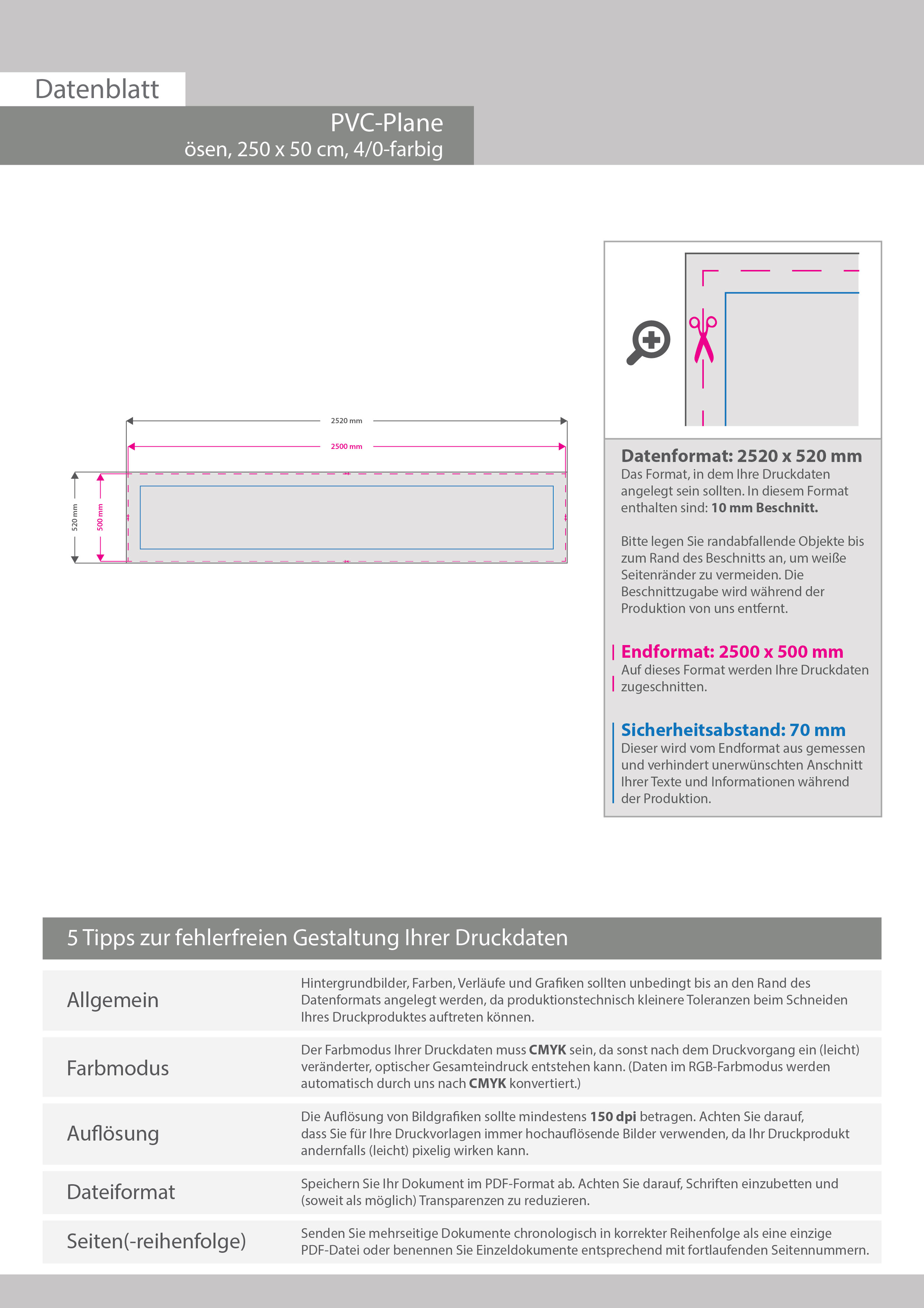 Hochwertige PVC-Plane 250 x 50 cm, 4/0-farbig bedruckt, Ösen im Abstand von 50 cm links und rechts