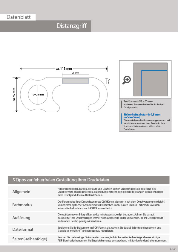 Distanzgriff, 4/0-farbig einseitig bedruckt