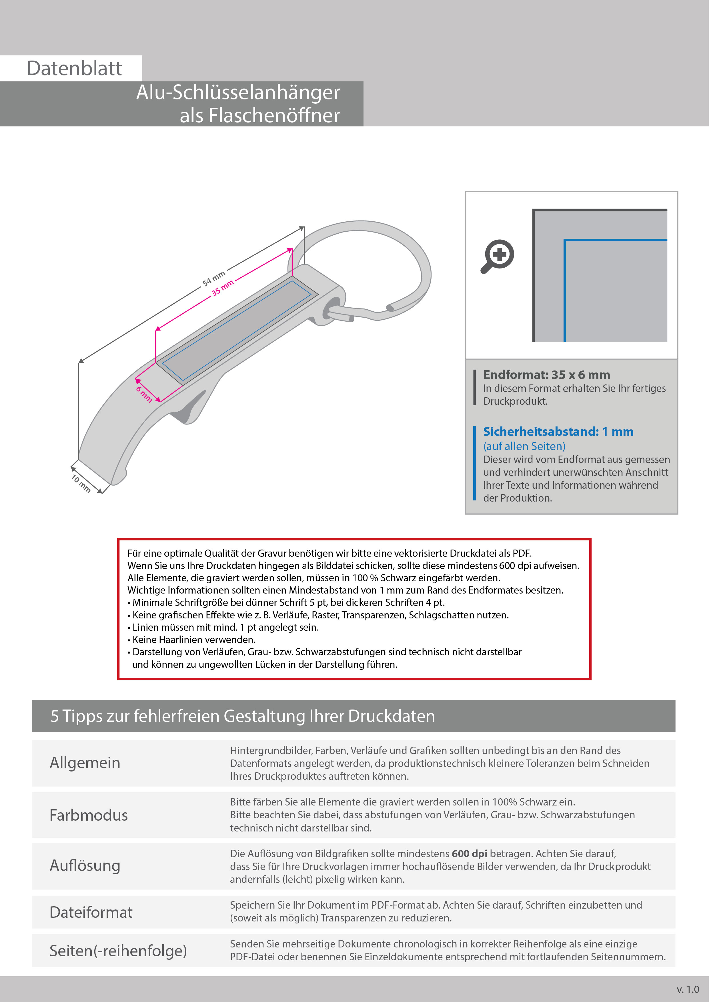 Aluminium-Schlüsselanhänger als Flaschenöffner mit einseitiger Lasergravur